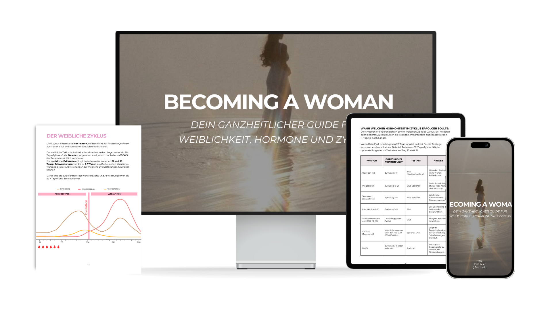 Dieser Guide hilft dir, deine Hormone ganzheitlich zu verstehen und wieder in Balance zu bringen. Du lernst, wie Zyklus, Ernährung, Stress, Supplements und Lebensstil zusammenwirken und was dein Körper wirklich braucht.