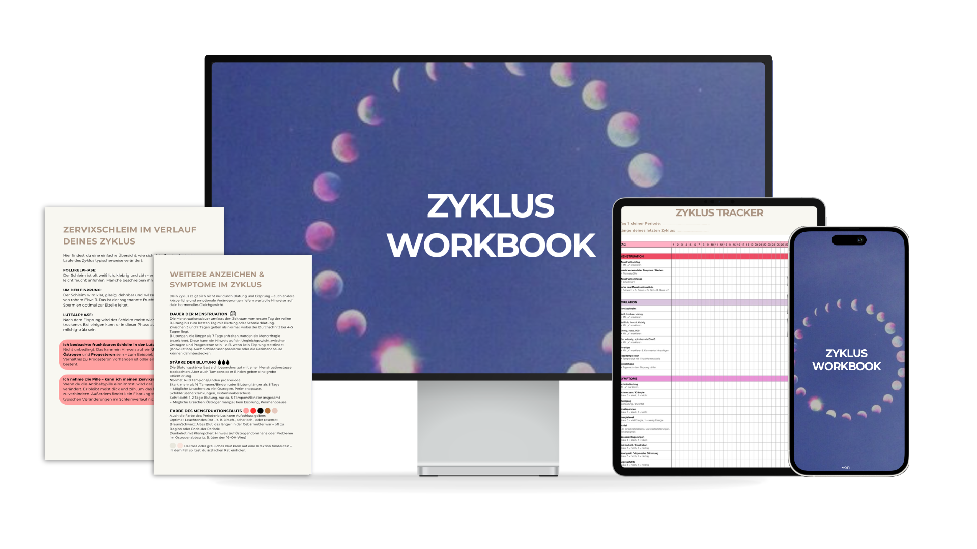 Das Zyklus Workbook, hilft dir dabei, deinen Zyklus und deine Hormone wirklich zu verstehen. Du lernst die vier Phasen deines Zyklus kennen, erkennst Zusammenhänge zwischen Hormonen, Stimmung und Energie und bekommst nützliche Tipps zum Zyklustracking, Symptom-Deutung und Tracking Charts. So kannst du deinen Alltag im Einklang mit deinem Zyklus gestalten und deinen Körper gezielt unterstützen.